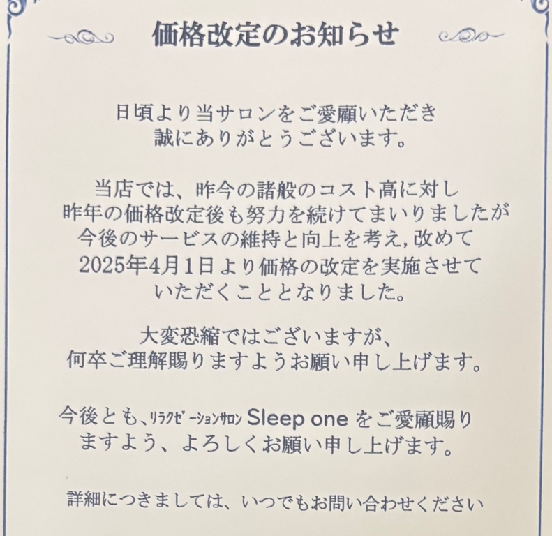 価格改定に関してご理解のほどよろしくお願いいたします。