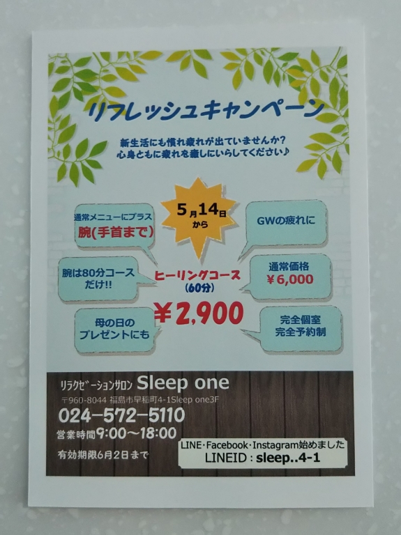 5月14日(月)よりリフレッシュキャンペーンが始まります(^^♪