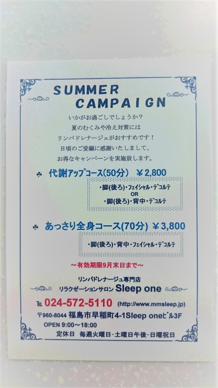 夏のむくみや冷え対策には リンパドレナージュがおすすめです(^^♪ もちろん肩凝りにも!