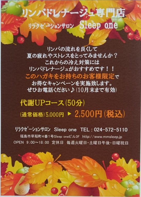 ただいまSleep oneでは夏に引き続きキャンペーンを行っております。